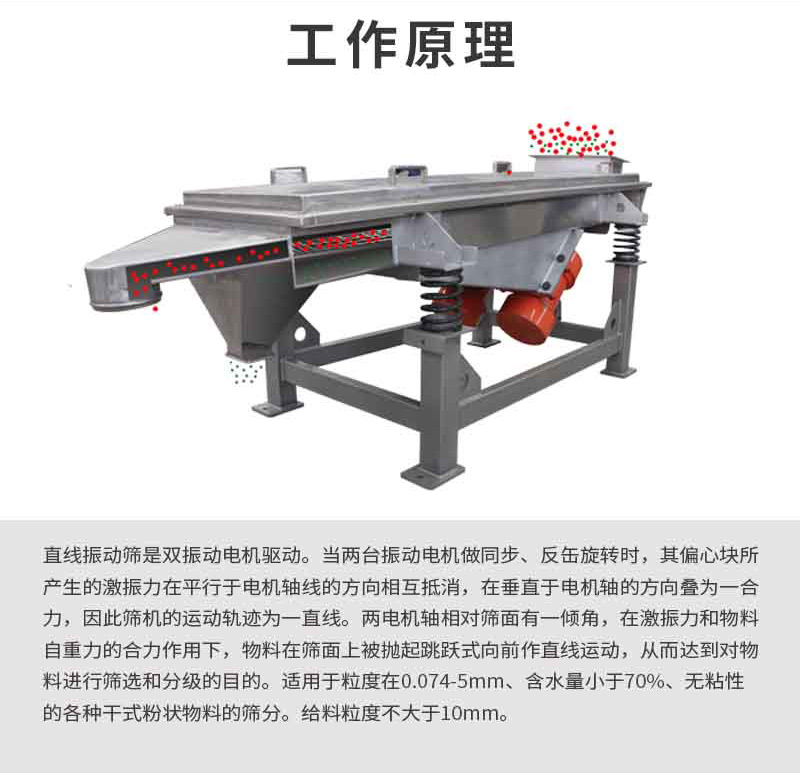 【物料要求】:顆粒度物料,如食品,化工,建筑類物料原料 【產(chǎn)品簡述】:直線振動篩可以將物料按照粒徑大小不同而分級為多種規(guī)格,提高物料的利用價值。產(chǎn)量大,篩分精,是食品,化工,醫(yī)藥,建筑等多行...