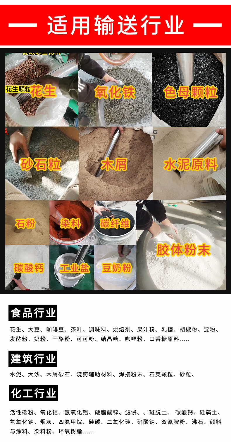 【物料要求】:粉末,顆粒類(lèi)物料均可以輸送,一般粒度在400目-3cm之間為宜